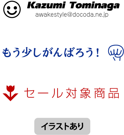 イラストレーターのデータ入稿で スタンプを作成します。 スタンプ台が不要で、連続捺印が可能な浸透印です。 住所印、Eメールスタンプ、業務用ハンコなどなど お好きな内容で承ります。 ■ サイズ スタンプサイズ ブラザー2770タイプ / brother 2770 type 有効印面サイズ23.7×67.1mmに収まる範囲で作成します。 ■ 捺印回数 約20,000回の捺印が可能です。 インクを補充することにより、繰り返しご使用頂けます。 ブラザースタンプ専用補充インクをお使いください。 ■ 価格について (価格は税抜きです。) 区分1 文字のみの場合 文字のみまたは文字+簡単な線(1本程度)のみ。 塗りと線が混在する場合は文字のみ扱いにならない場合がございます。 区分2 イラストなど +400円(税別) 複数の線やイラスト、図形を含む場合 区分3 配置画像あり +900円(税別 塗りと線が混在した複雑なデータ、配置画像を含む場合 ■ お申し込み時の価格について 自動計算に価格は反映されないため、表記の価格のままご注文をお願い致します。 ご注文内容と入稿データを確認後、当店で価格を変更処理致します。 お申し込み前に価格を確認したい場合は、メールでデータとご希望のスタンプサイズをお知らせ下さい。 確認後メールで回答致します。 info@awakestyle.com宛 件名:スタンプ作成可否の問い合わせ。 ■ 使用上のご注意 朱肉を必要とする、公的機関で使用する実印、印鑑としては御使用頂けません。 また、著作権、肖像権等国内の法律に違反する内容のものは、スタンプによる製作は出来ません。 掲載イメージはお客様のPC環境によって色の見え方が異なります。 画面の色と実際の仕上がりの色は異なる場合がございますのでご注意下さい。 通常は内容確定後、2営業日以内の発送になりますが、 可能な限り即日発送の優先対応の特急仕上げもご用意しておりますので お急ぎのお客様はご利用ください。 インクについて カラーは5色よりお選び頂けます。 ブラザー専用補充インクも販売しております。 スピード納期 レイアウト確定後、2営業日以内に発送いたします。最速で即日発送も可能です。 割引について 1度のご注文が30個以上の場合は割引も可能です。ご相談ください。 2度目以降は 割引クーポンによるリピート割引もございます。 ギフト包装 プレゼント用のラッピングも承ります。 ※有料サービス美しく、はっきり鮮明に捺印できます。 従来の凹凸のあるゴム印とは違いインク内蔵式の浸透印なので、かすれや潰れも少なく 美しく、はっきりきれいに捺印できます。 フリーレイアウト、オーダーメイド。オーダースタンプ。 イラストレーターのデータからオリジナルを作成します。 イラストレーター形式以外のデータについては オリジナルスタンプのページをご参照ください。 データの内容によって価格が異なります。 どの区分かわからない場合は、区分1のままお申し込みください。 データ確認後正しい価格に訂正いたします。 ご注文前に確認したい場合はメールでデータを添付の上、 お問合せをお願い致します。 info@awakestyle.com宛 件名 スタンプ価格、作成可否の問い合わせ 文字のみまたは文字と簡単な線(2本程度まで)のみ。 文字のみでも塗りと線が混在する場合は文字のみ扱いにならない場合がございます。 イラストレーターのパスのみで作成されたデータ。複数の線やイラスト、図形を含む場合。 配置画像を含む場合。 イラストレーターのパスのみでも、塗りと線が混在した複雑なデータの場合は区分3になる場合がございます。、 インク内蔵の浸透印です。スタンプパッド不要で 連続捺印が可能です。 インク補充で繰り返しご使用いただけます。 インクのみの販売もございます。 (補充インクは別売りになります。) 従来のゴム印と違ってかすれやにじみが少なく、 くっきり鮮明に捺印できます。 文字のアウトライン、線の太さの制限など、詳しい説明を 掲載しておりますのでご確認をお願い致します。 スタンプ作成用のダウンロードしてご使用ください。 テンプレートの使用無しでの入稿も承ります。 作成内容確定後、 2営業日以内に発送致します。 ※ご注文からではなく、メールでのやりとり後、 最終デザイン確定後から2営業日になります。 数量が多い場合、繁忙期など納期に時間がかかる場合はメールにてお知らせします 優先対応の特急仕上げもございます。 他のサイズもご用意しております。詳しくはサイズ一覧をご確認ください。 デザインの参考に豊富なオーダースタンプ作成のサンプルをご用意しております。 当店は常に総合評価4.5以上の高評価を頂いております。 ネット販売、メールのやりとりも常に丁寧な接客を心掛けております。 インクカラー5色よりお選びください。 黒青赤朱緑。 割引クーポンによるリピート割引がございます。 50個以上のご注文は値引き可能です。お気軽にご相談下さい。 今まで大手企業様からのご注文をはじめ多くの実績がございます。