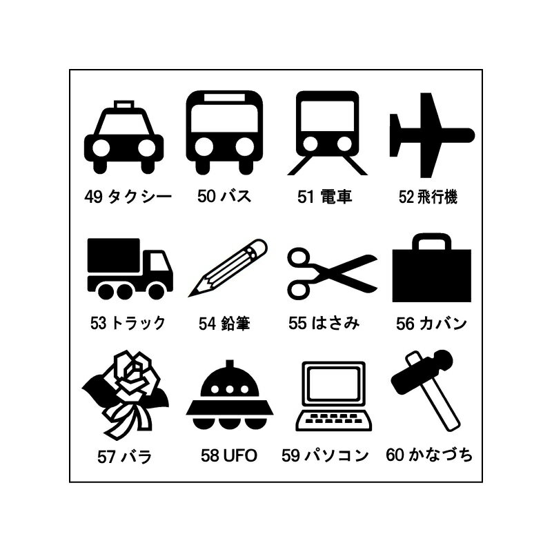 手帳 スタンプ はんこ 6mm No.49〜60 イラスト ミニ 絵柄印 浸透印 インク brother ブラザー シャチハタ式 スタンプ印 スケジュール カレンダー 連絡帳 メモ帳 手紙 はがき ハガキ タクシー バス 電車 飛行機 トラック 鉛筆 はさみ カバン バラ UFO パソコン かなづち