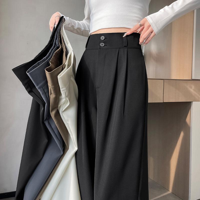パンツ レディース 高見え ゆったり 黒 春秋 高身長 小柄 梨体型 ストレート ワイドレッグ カジュアルパンツ きれいめ オフィスカジュアル・パンツのタイプ: ストレート・パンツ丈: フルレングス・ウエスト: ハイウエスト・流行の要素: アシンメトリー・カラー: ブラック, グレー, ホワイト, コーヒー色・サイズ: S, M, L, XL, 2XL・スタイル: アーバン, 通勤・対象性別: 女性・製品カテゴリ: カジュアルパンツ・加工: プリーツ