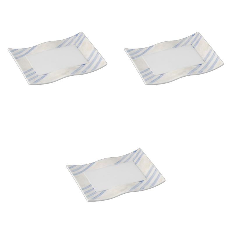 3個セット ブルー線ラスターウェーブ焼物皿 [ 21×15.7×3cm ] | 焼物皿陶磁器 セトモノホンポ(Setomonohonpo)