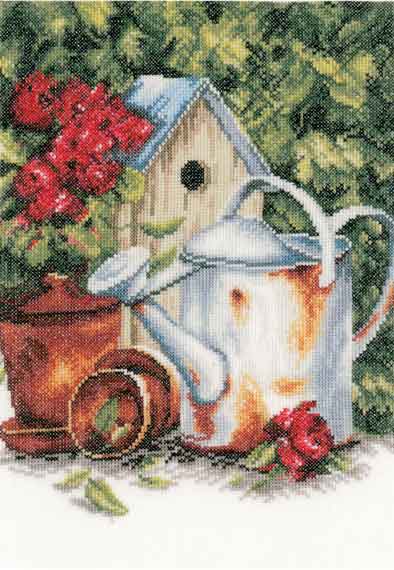 メール便送料無料 クロスステッチ 刺繍キット Lanarte/ラナーテ Watering Can & Birdhouse/じょうろと巣箱 リネン30ct(6目/cm) 植物 クロスステッチキット ししゅう 刺繍