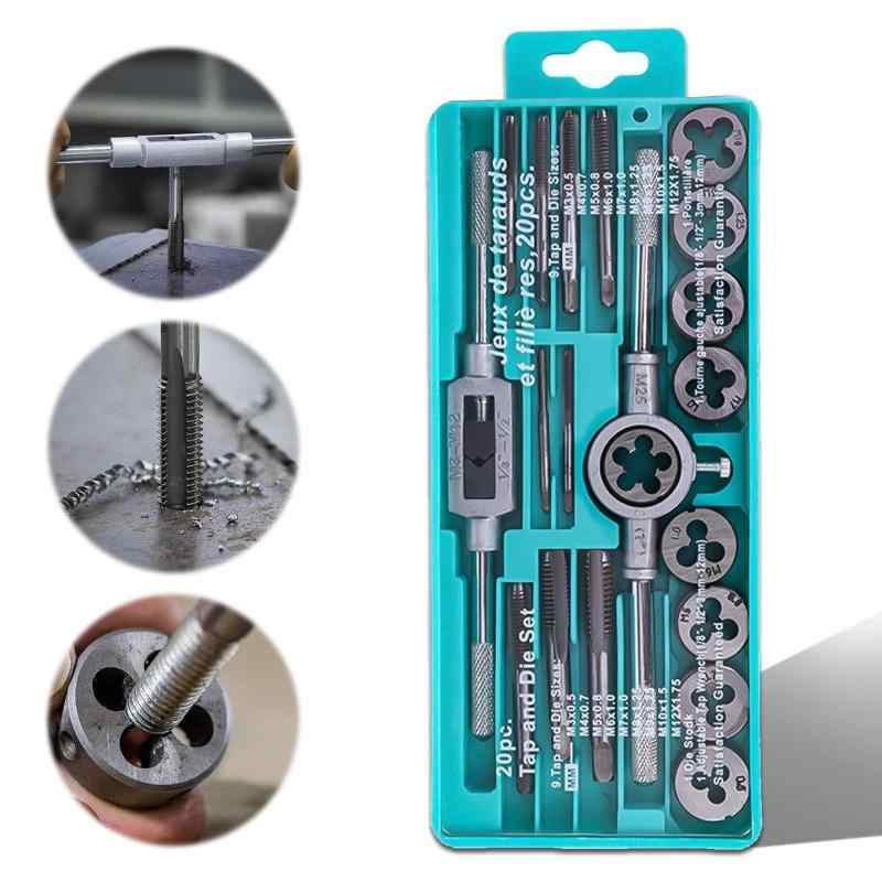 aninako タップダイスセット 20点セット ネジ切り ネジ穴 ネジ山修正キット ボルト ナット 補正 修復 高硬度 タップ レンチ 調整可能 各種サイズのネジ山に対応
