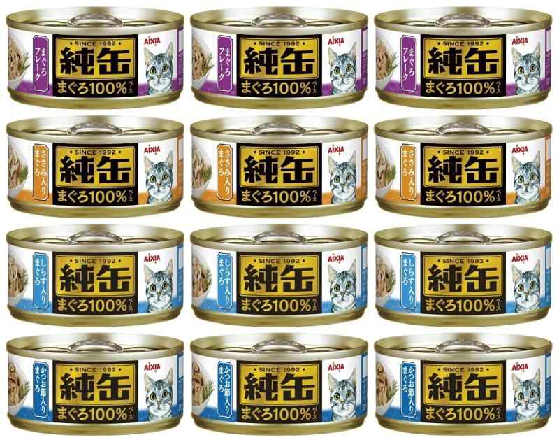 アイシア 純缶 ミニ まぐろ100%ベース まぐろフレーク ささみ入りまぐろ しらす入りまぐろ かつお節入りまぐろ 猫用缶詰 ゼリータイプ 65g 4種 各3缶 セット