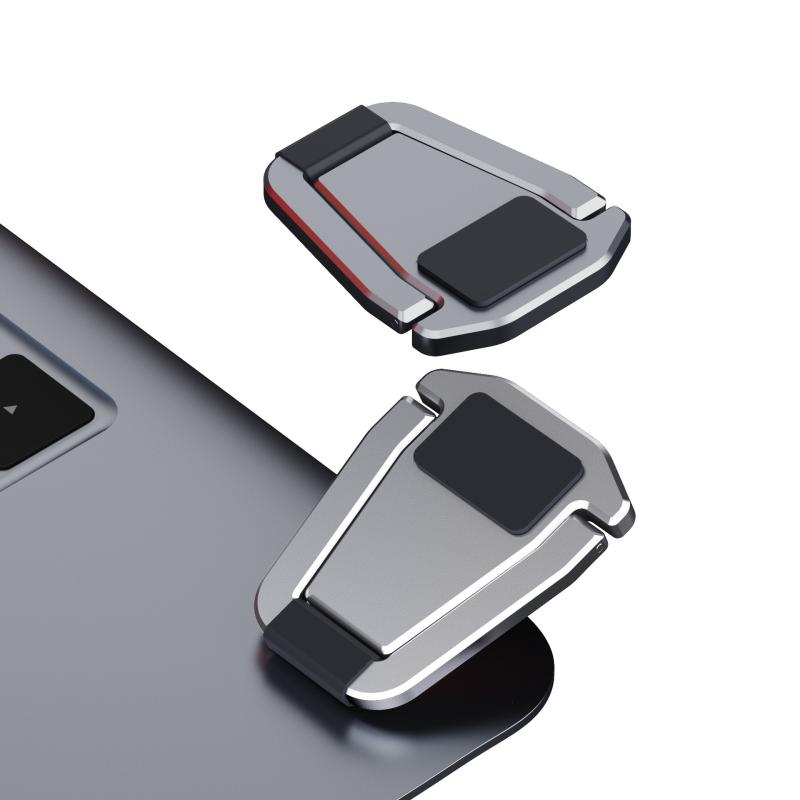 ノートパソコンスタンド、Macbook PCスタンド、人体工学に適合、貼り付け式、折り畳み式 フットヒート 亜鉛合金製 耐久性 持ち運びに便利 冷却 放熱対策 軽量 滑り止め 2個 (シルバー)