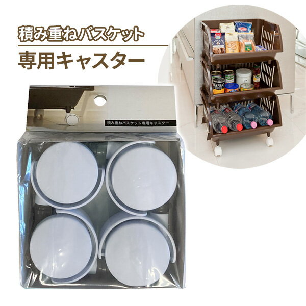 キャスター 積み重ねバスケット 専用キャスター ホワイト (4個入) | 移動 車輪 脚車 はめ込み式 積み重ねバスケット 専用キャスター
