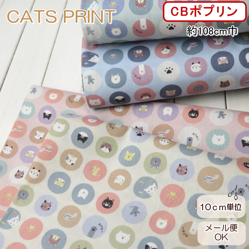 生地 ねこ柄 生地 猫柄 108cm巾 綿100% CBポプリン≪にゃんこスタンプ≫(2024)【10cm単位】 布 アイコン 袋物 子供服 スカート 日本製
