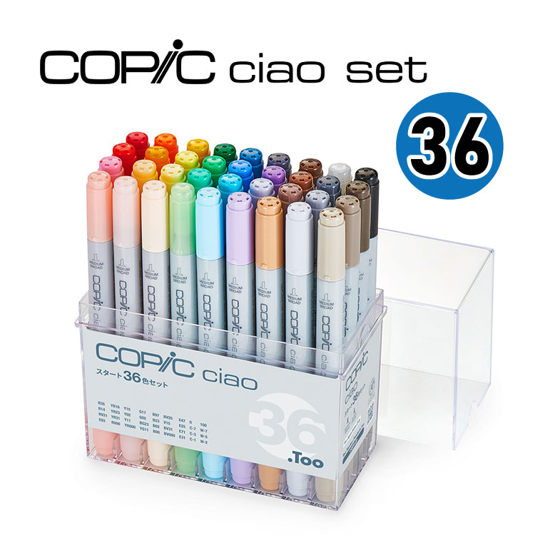 コピックペン コピックチャオ 36色 チャオセット36色 コピック コピックチャオ チャオ セット スタート ケース付 【ラッピング無料】 チャオセット チャオ36色 ペン インク スタートセット カラーペン マーカーペン ブラシニブ ブロードニブ インク補充可能 ニブ交換可能