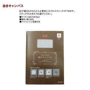 ハンカチやTシャツなど好きなところにクロスステッチができるとても便利なアイテム。刺しゅうをしてから、キャンバスを抜き取ります。抜き糸:2本並び本体サイズ :約25×18cm製造国 :ドイツ