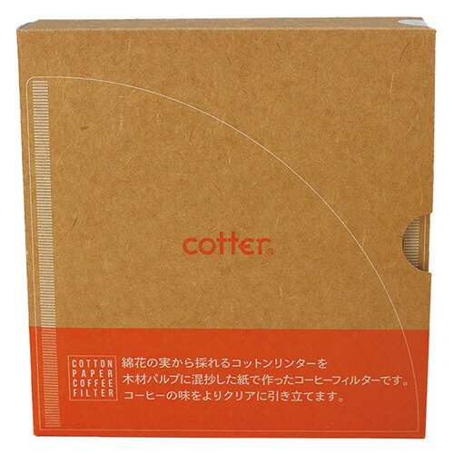 ●綿花の実から採れるコットンリンターを木材パルプに混抄した紙で作ったコーヒーフィルター、1〜4杯用・60枚パックです。●本品は円錐形ドリッパー専用です。●杯数/1〜4杯●色/白●材質/コットンリンターパルプ、木材パルプ●生産国/日本●1パック=60枚※台形ドリッパーではご使用できません。※コーヒードリッパーとコーヒーフィルターのサイズ・形状が合っていることをお確かめの上、ご使用ください。●メーカー/アートナップ●型番/COT-52●JANコード/4901091903439<パッケージ>※メーカー都合によりパッケージ・仕様等が予告なく変更される場合がございます。ご了承ください。本商品は自社サイトでも販売しているため、ご注文のタイミングにより、発送までにお時間をいただいたり、やむをえずキャンセルさせていただく場合がございます。※沖縄へのお届けは別途1650円(税込)の送料がかかります。
