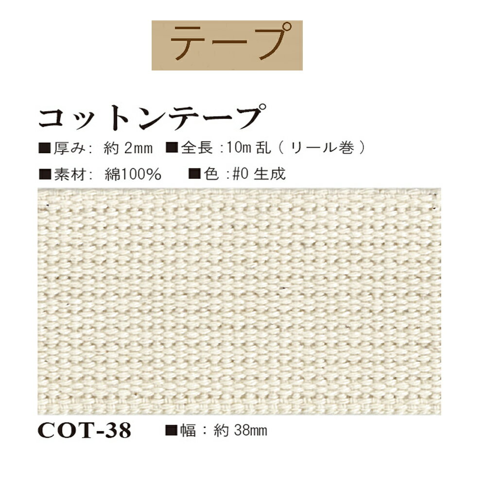 コットン100%のコットンテープです。 生成のみで1色10m単位1巻です。 サイズ:約38mm×10m乱巻 素材:コットン100% ※サイズ違いは品番が違います。 ※リール巻です。 ※価格は10メーターの価格です。 ※20mご注文の際は10m巻きが2反になりますのでご了承下さい。 ※この商品は10m巻きのみの販売になります。 ※メーターカットは致しておりませんので予めご了承下さい 。 幅約25mmのコットンテープはこちら 幅約30mmのコットンテープはこちら 幅約20mmのコットンテープはこちら ※ゆうパケットでの発送は出来ません