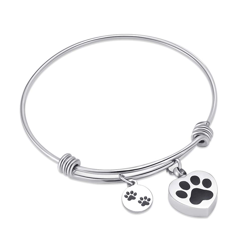 *灰犬猫肉球プリントペット記念碑の拡張可能なcuffcremationブレスレットUrnジュエリー