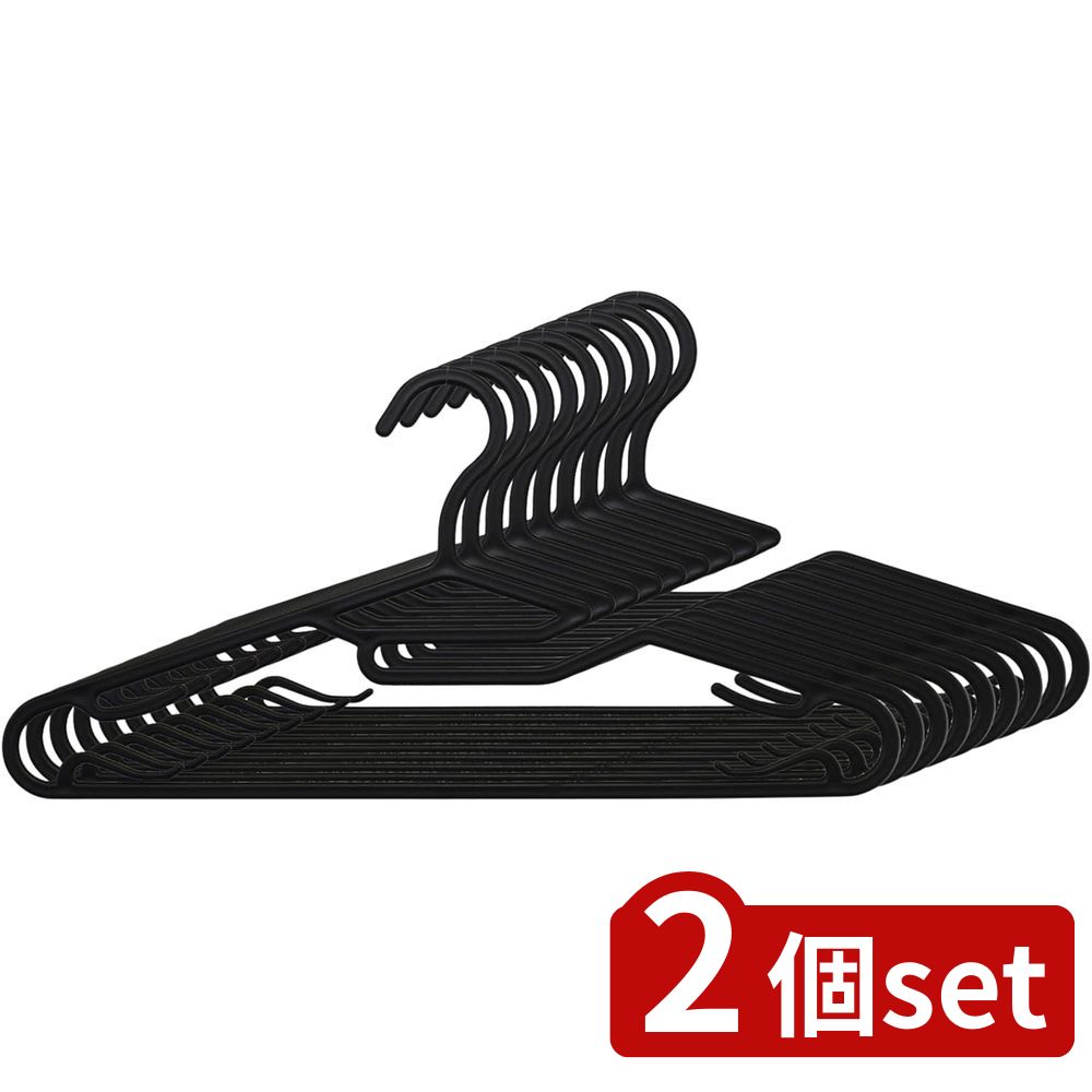 2個set シンコハンガー リバース シャツハンガー 10本組 | リバース シャツハンガー ブラック 超スリムハンガー かたくずれ防止 跡がつかない シンプル 省スペース 薄型 物干し 洗濯 多機能 プラスチック 衣類 洋服 収納 ワイシャツ カッターシャツ クルーネック 丸首