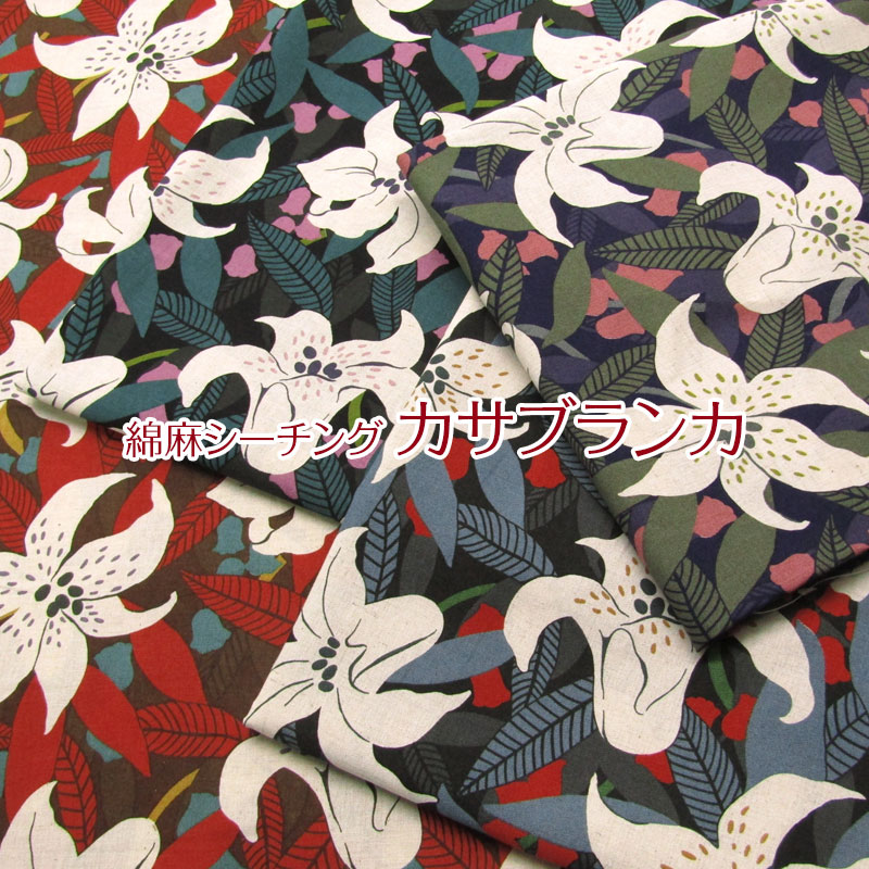 綿麻シーチング カサブランカ(単位50cm)花柄/フラワー/はな/ハナ/flower/オリエンタル/ユリ/百合/リリー/布/生地/コットンリネン/プリント