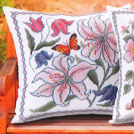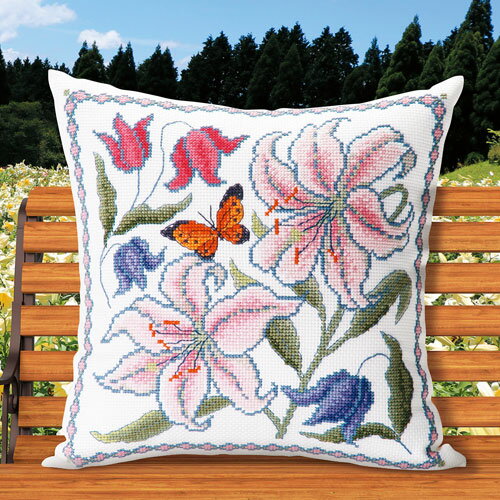刺しゅうキット クッションカバー カサブランカと蝶 6061 オリムパス 【KY】 クロスステッチ オノエ・メグミ