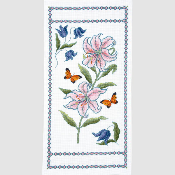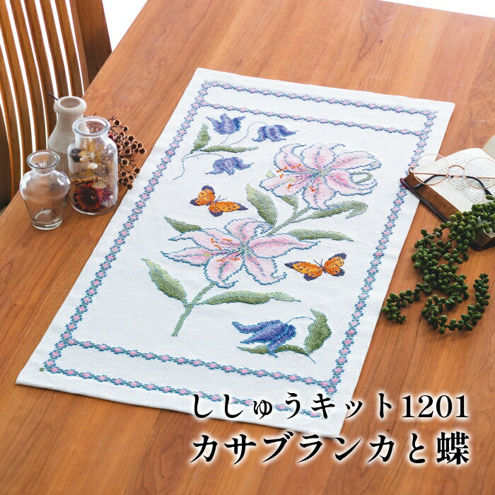 刺しゅうキット テーブルセンター カサブランカと蝶 1201 オリムパス 【KY】 花咲く庭の小さな物語 クロスステッチ オノエ・メグミ
