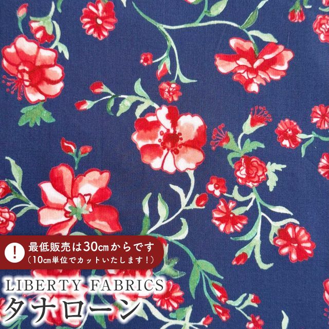 LIBERTY FABRICS リバティプリント イタリア製タナローン生地<Christina Vine>(クリスティーナ・ヴァイン)【レッド花×ネイビー地】《2025AW Decades in Bloom》363J75913-25CU