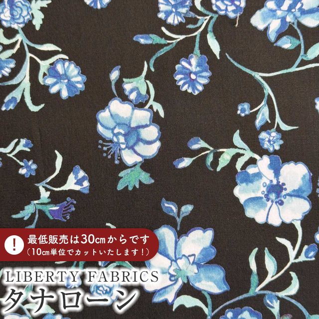 LIBERTY FABRICS リバティプリント イタリア製タナローン生地<Christina Vine>(クリスティーナ・ヴァイン)【ネイビー花×ブラック地】《2025AW Decades in Bloom》363J75913-25DU