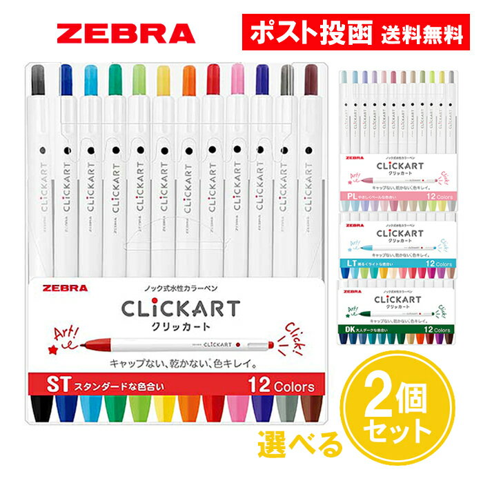 ゼブラ クリッカート 12色セット 選べる2個セット 水性マーカー ノック式 水性カラーペン WYSS22-12CST WYSS22-12CLT WYSS22-12CDK WYSS22-12CPL