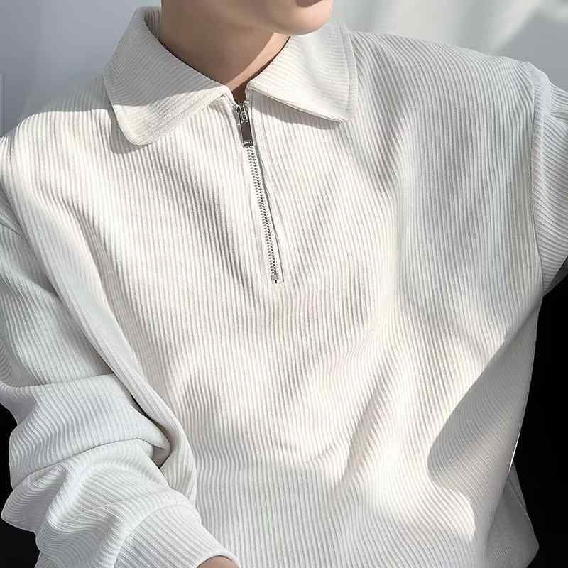 ニット メンズ 秋冬 tendances_mode_ tendance 折り襟 ジッパー ストライプ セーター おしゃれ polo襟 長袖 無地