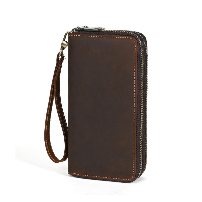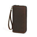 長財布 メンズ 本革 トップグレインレザー ダブルファスナー レトロ クレイジーホースレザー 大容量 カード入れ 複数ポケット ウォレット セカンドバッグ ブラウン