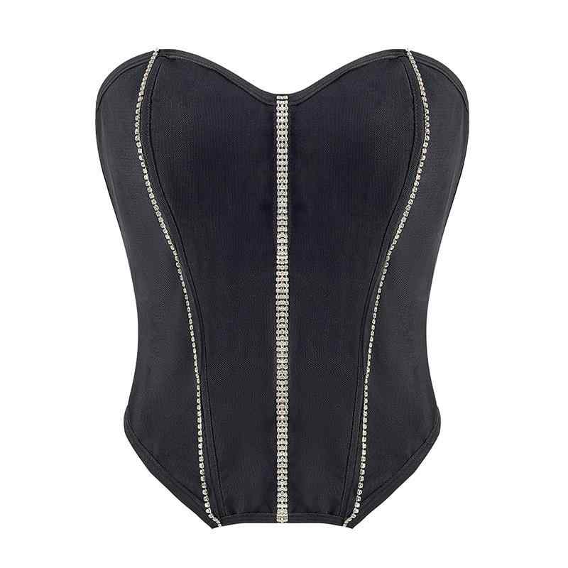 トップス レディース ノースリーブ ショート丈 キャミソール ビスチェ 魚の骨 サポート 裾延長 サテン オフショルダー 肩出し リボン 美背中 コルセット ブラック ポリエステル 修身 タイト 無地 アーバン 通勤 S M L XL2