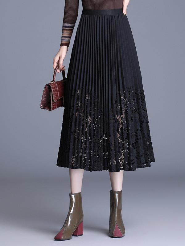 ・カテゴリ: スカート・スタイル: エレガントカジュアル・主な素材: ポリエステル95%以上・柄: 無地・デザイン: パッチワーク、切り替え・スカートタイプ: プリーツスカート・スカート丈: ミディ丈・カラー展開: ブラック・サイズ展開: M、L、XL、XXL、XXXL