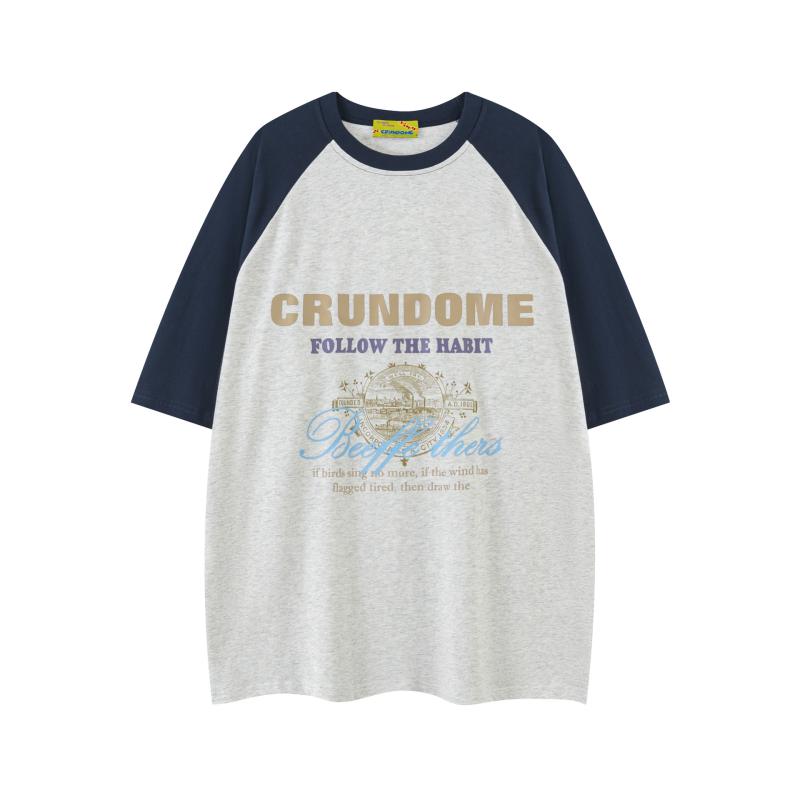 Tシャツ 男女兼用 アメリカン カレッジスタイル プレッピー 切り替え バイカラー ロゴ プリント 半袖 春夏 レトロ ゆったり ルーズ ビッグシルエット ドロップショルダー クルーネック 丸首 コットン 綿 ストリート カジュアル 着回し ベーシック
