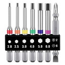 OIENNI ヘックス ビットセット 7本組 ドライバービット 六角ビット 片頭ヘックス 65mm 対辺2/2.5/3/4/5/6 磁気ビット 電動ドライバービット 6.35mmシャンク インパクト対応【商品仕様】サイズ:対辺2/2.5/3/4/5/6×65mm(片頭ヘックス各1本)、+2/-6×65mm(双頭ビット1本)。セット内容:7本組。シャンク径:6.35mm。素材:クロムバナジウム鋼。硬度:HCR60±。【高耐久ビット】高品質の工業用特殊合金鋼を鍛造し、熱処理技術を採用して、高硬度、トルク、靭性、およびより耐久性が実現します。【カラーリング】カラーリングでサイズが分かりやすいです。ホルダー付き、ビット整理収納に便利です。ビットはマグネット入ります。【使用機種】充電式インパクトドライバー、充電式ドリルドライバー、コード式インパクトドライバー、コード式ドリルドライバーなどに適しています。【幅広い用途】六角穴付きボルト、六角穴付き止めネジ用です。機械設備、空圧機器、金型、建材、家電、配電盤、自動車やオートバイなどの組み立て、メンテナンスに適しています。