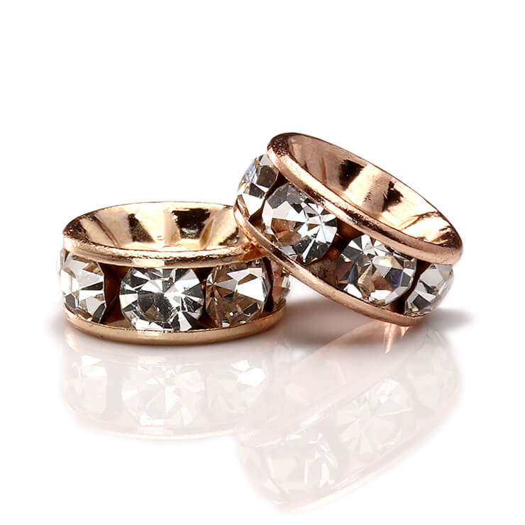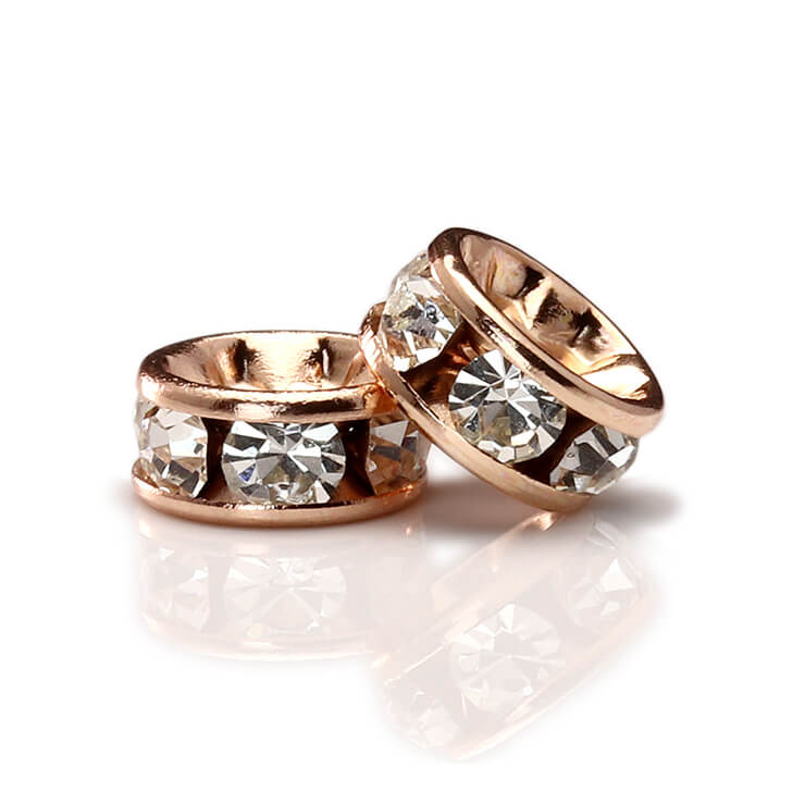 Rondel Pinkロンデル 8mm(平型・ピンクゴールド)「ピンクゴールドカラー ロンデル」の8mmサイズのバラ売り販売です。こちらは「ビーズ加工技術の本場」ともいわれる「チェコ」で製造し、国内にてメッキコーティングを行った、上質な「ロンデル」を使用しております。一般的に流通しているロンデルパーツよりも、パーツ、メッキの耐久性が異なります。※塩水に一か月浸す実験でも、色の変化はありませんでした。ロンデル ピンクゴールド天然石パーツの引き立て役にピンクゴールドなので、ローズクォーツ、アクアマリン、翡翠などのストーンとの組み合わせに最適で、高級感を楽しめます。レディースアクセサリーに重宝します。sizeサイズ・品質についてロンデルは、メインストーンの左右等に使うことによって、大粒のストーンの美しさがさらに引き立ちます。8mmの大きさなので、10mmや12mmストーンとのバランスが良いです。製造はチェコ製なので他製品と比較してラインストーンの輝きが一段と綺麗です。そして特殊な製造方法により、ラインストーンが他製品と比較してしっかりと固定されている点も特徴です。表面のメッキコーティングも国内にて行っているため色合い・品質ともに安定しています。パーツサイズ:8.2〜8.4mm × 3.4〜3.5mm穴サイズ:2mm品質:色合いは均一で、個体差もほとんどありません。・こちらは1個からの販売となります。・撮影に照明を使用しています。・色合い・明るさはお手元の照明環境等によって異なって見える場合がございます。・可能な限り写真・掲載情報に近い在庫をご用意しておりますが、製造ロットによって多少の色差・サイズ差がございます。・ご利用のディスプレイによって色合いが若干異なります。Selected厳選された1つ1つのパーツパスクルの販売パーツは、3段階の厳しい基準による検品を経た、厳選品だけをご提供しております。