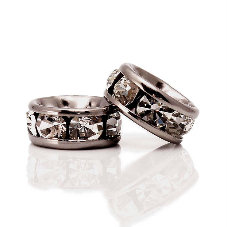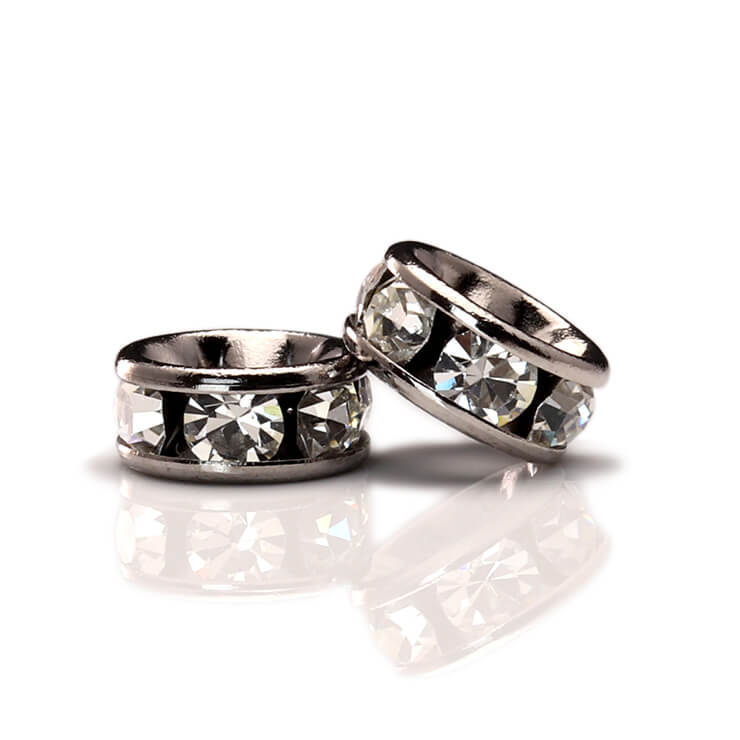 Rondel Silver blackロンデル 10mm(平型・シルバーブラック)「シルバーブラックカラー ロンデル」の10mmサイズのバラ売り販売です。こちらは「ビーズ加工技術の本場」ともいわれる「チェコ」で製造し、国内にてメッキコーティングを行った、上質な「ロンデル」を使用しております。一般的に流通しているロンデルパーツよりも、パーツ、メッキの耐久性が異なります。※塩水に一か月浸す実験でも、色の変化はありませんでした。ロンデル シルバーブラック天然石パーツの引き立て役に通常のシルバーよりも暗めの「シルバーブラック」ですので高級感があります。ブラックスピネルやヘマタイト、タイガーアイ等との組み合わせ相性が良く、主にメンズアクセサリーの作成等で重宝します。sizeサイズ・品質についてロンデルは、メインストーンの左右等に使うことによって、大粒のストーンの美しさがさらに引き立ちます。10mmの大きさなので、12mmや14mmストーンとのバランスが良いです。製造はチェコ製なので他製品と比較してラインストーンの輝きが一段と綺麗です。そして特殊な製造方法により、ラインストーンが他製品と比較してしっかりと固定されている点も特徴です。表面のメッキコーティングも国内にて行っているため色合い・品質ともに安定しています。パーツサイズ:10.8〜11.2mm × 3.4〜3.5mm穴サイズ:2mm品質:色合いは均一で、個体差もほとんどありません。・こちらは1個からの販売となります。・撮影に照明を使用しています。・色合い・明るさはお手元の照明環境等によって異なって見える場合がございます。・可能な限り写真・掲載情報に近い在庫をご用意しておりますが、製造ロットによって多少の色差・サイズ差がございます。・ご利用のディスプレイによって色合いが若干異なります。Selected厳選された1つ1つのパーツパスクルの販売パーツは、3段階の厳しい基準による検品を経た、厳選品だけをご提供しております。