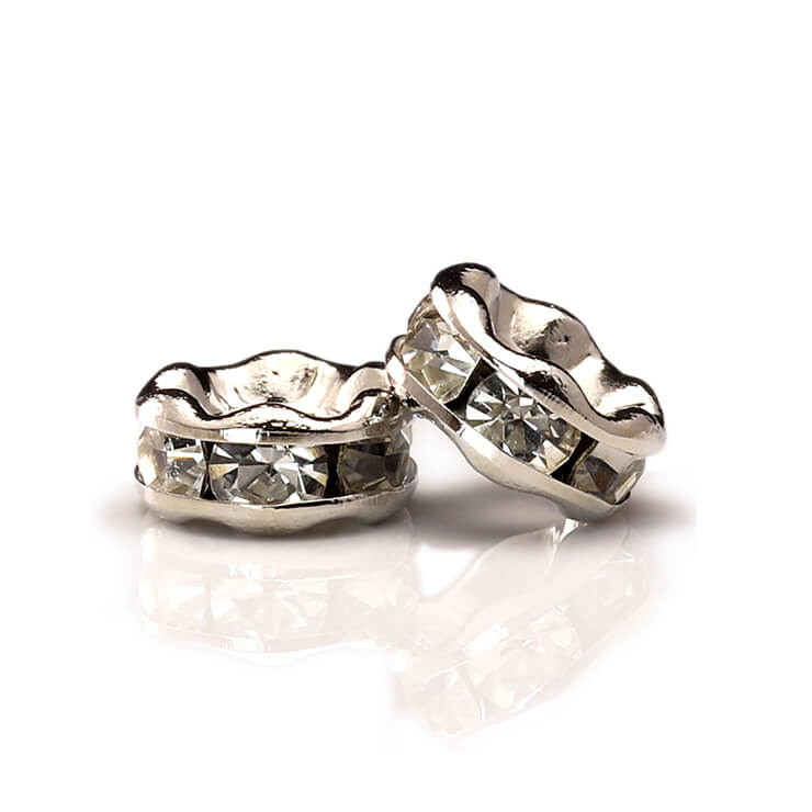 Rondel Silverロンデル 8mm(波型・シルバー)「シルバーカラー ロンデル」の8mmサイズのバラ売り販売です。こちらは「ビーズ加工技術の本場」ともいわれる「チェコ」で製造し、国内にてメッキコーティングを行った、上質な「ロンデル」を使用しております。一般的に流通しているロンデルパーツよりも、パーツ、メッキの耐久性が異なります。※塩水に一か月浸す実験でも、色の変化はありませんでした。ロンデル シルバー天然石パーツの引き立て役にシルバーカラーなので、どんな石とも組み合わせられ、尚且つ高級感がでます。こちらはスタンダードな平型と違って、波型デザインなので、レディースデザイン向けです。sizeサイズ・品質についてロンデルは、メインストーンの左右等に使うことによって、大粒のストーンの美しさがさらに引き立ちます。8mmの大きさなので、10mmや12mmストーンとのバランスが良いです。製造はチェコ製なので他製品と比較してラインストーンの輝きが一段と綺麗です。そして特殊な製造方法により、ラインストーンが他製品と比較してしっかりと固定されている点も特徴です。表面のメッキコーティングも国内にて行っているため色合い・品質ともに安定しています。パーツサイズ:8.2〜8.4mm × 3.4〜3.5mm穴サイズ:1.4mm品質:色合いは均一で、個体差もほとんどありません。・こちらは1個からの販売となります。・撮影に照明を使用しています。・色合い・明るさはお手元の照明環境等によって異なって見える場合がございます。・可能な限り写真・掲載情報に近い在庫をご用意しておりますが、製造ロットによって多少の色差・サイズ差がございます。・ご利用のディスプレイによって色合いが若干異なります。Selected厳選された1つ1つのパーツパスクルの販売パーツは、3段階の厳しい基準による検品を経た、厳選品だけをご提供しております。