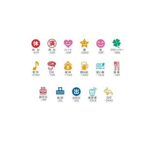 パイロット フリクションスタンプ その1 休み 済み ハート 星 笑 クローバー 音符 OK 給料 飲み会 習い事 食事 誕生日 病院 出社日 歯医者 ヨガ