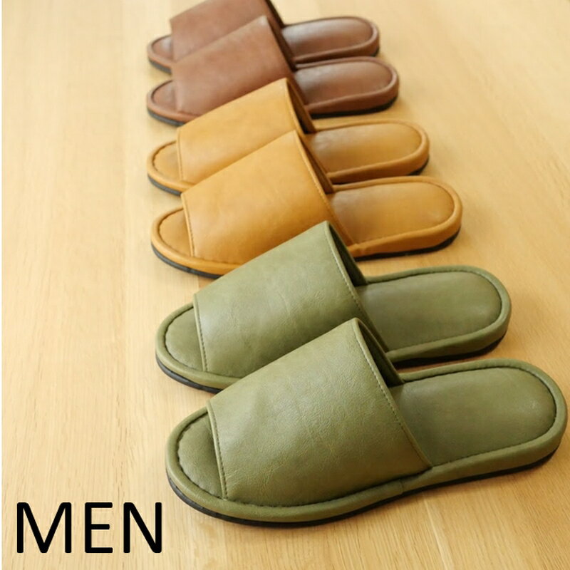 【レザースリッパ】紳士 抗菌合皮 メンズサイズ 日本製 ビニール製 レザー 来客用 トイレ 室内履き シンプル おしゃれ ルームシューズ 事務所 入学式 卒業式 病院 歯医者 待合室 受付 大きい 通年用 室内 夏用