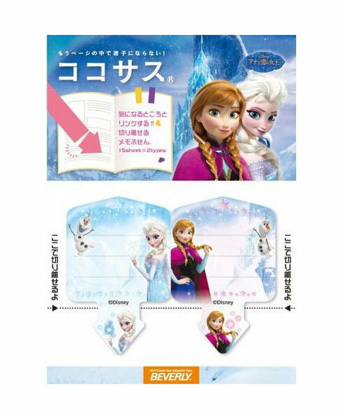 大ヒットディズニー映画!アナと雪の女王のココサスふせんが新発売です!美しいアナとエルサがデザインされたふせんです♪雪の結晶が輝くように描かれ、グラデーションがとても美しい仕上がりです♪存在感のある、目を惹くアイデアグッズです!ブックマークしたけれど、どの情報だったかな?って探すことがあります。そんな悩みを解消!切り離せるふせん「ココサス」色や形でリンクするので大事な情報が一目でわかる!新感覚のふせんです!美しいデザインと共に、重要ポイントをしっかりマーキング♪もうページの中で迷子にならないです♪学校で、職場で、雑誌、地図など大活躍です!子供会、ビンゴ大会、お楽しみ会、クリスマスパーティー、サークル活動、社内旅行や慰安旅行などの賞品景品粗品参加賞記念品賞品にもGOODです!便利なココサスメモふせんです♪★1枚のふせんサイズ:W30mm×H45mm★入 数:2柄 各15枚入り(計30枚入り)★パッケージサイズ:W77×H130★材 質:紙★台紙付きPP袋入り★日本製