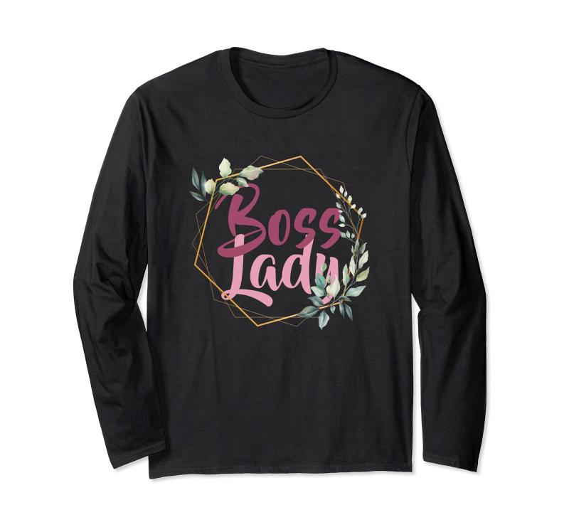 Boss Lady Feminine Geometric Design with Accent Foliage 長袖Boss Lady design incorporates a feminine font in pink, with a geometric design surrounding it, and light foliage for accent. Honor your Boss on Boss's Day Merch, Working Mom's SurpriseWomen in Management, New Job Promotion for Ladies, and Mom's who run the house, will enjoy this feminine Boss Lady design. Pink Font surrounded by a geometric design and light foliage, makes it perfect for ladies apparel and merchandise.長袖tシャツ