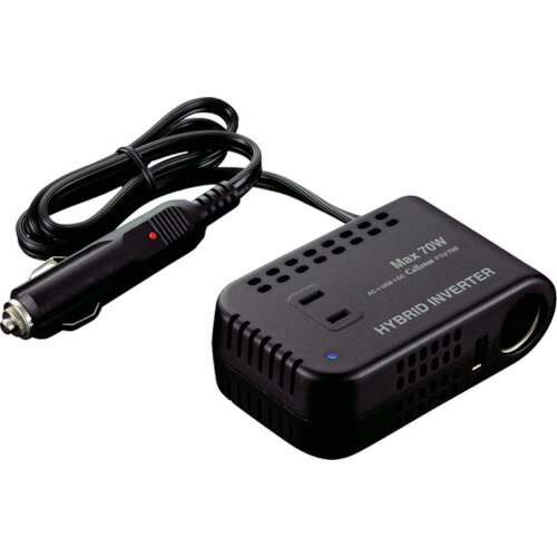 ・12V車の中で100V機器が使えます。・車内でスマホの充電など。・入力電圧(V):DC12・定格出力(W):56・最大出力(W):70・幅(mm):104・奥行(mm):65・高さ(mm):35・出力電圧(V):AC100・定格出力電力(W):56・最大70W・定格出力56W・ナイロン複合材・生産国 台湾・JANコード 4962886541144・質量 230g・コード:100-7018 ・品目:FTU70BFTU-70B楽天 HD店