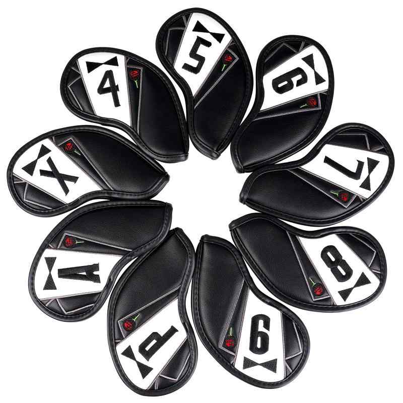 ゴルフクラブヘッドカバー ドライバー用/フェアウェイウッド用/ユーティリティー用/セット/パター/アイアンカバー ブラック&ホワイト 合成皮革 The Golf Father
