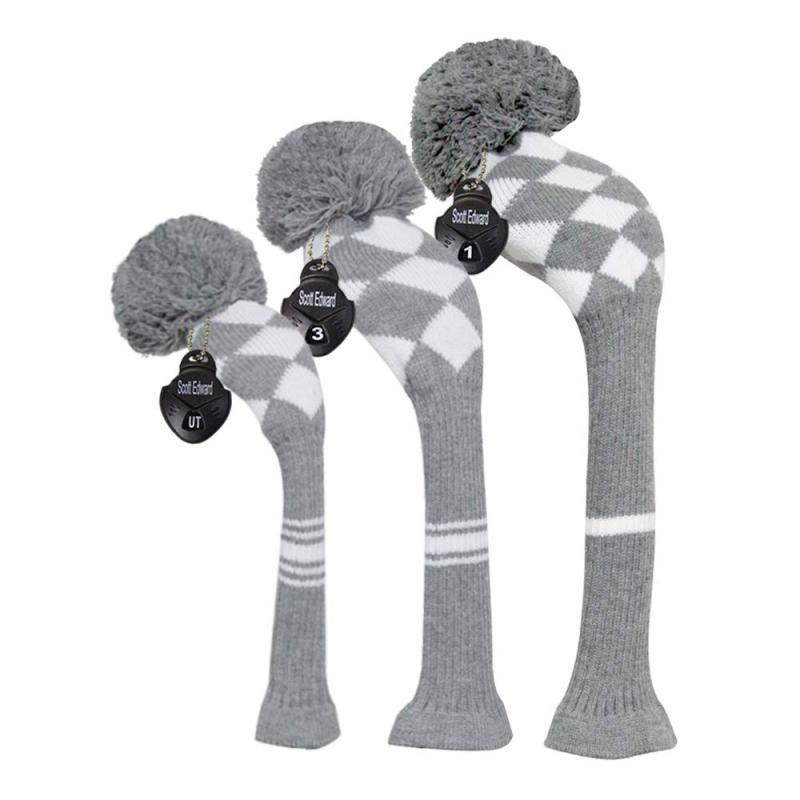 灰色の白の格子 ゴルフヘッドカバーセット、ドライバー、フェアウェイウッドとハイブリッドUT、防シワを防ぐ。、洗って、柔らかい。