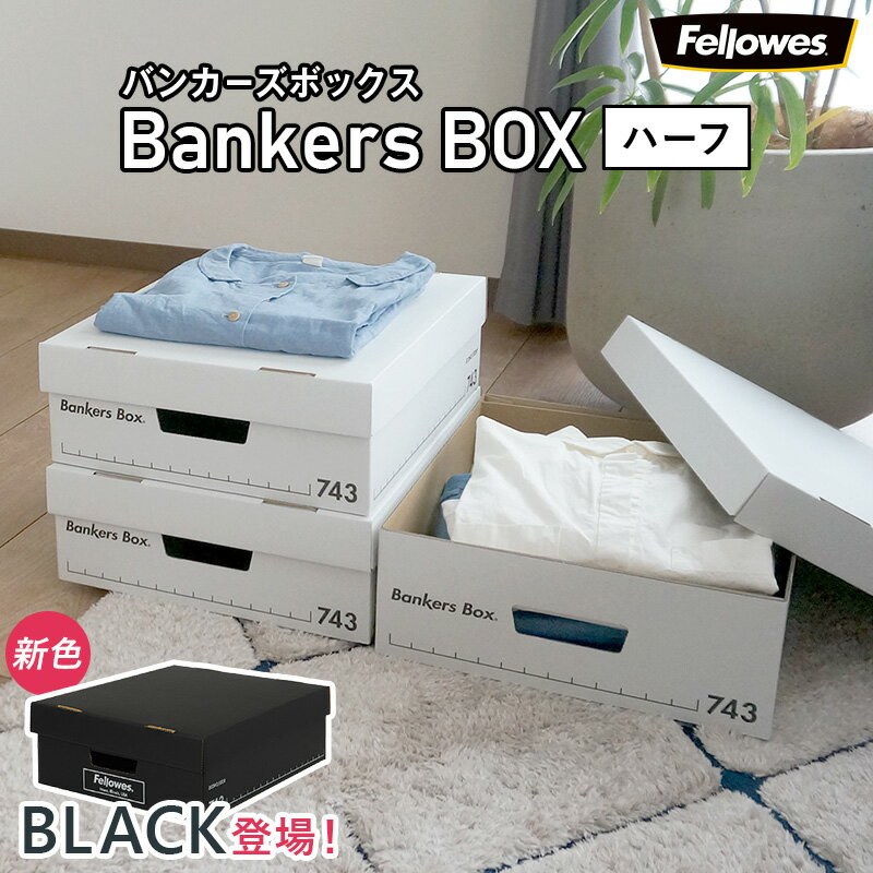 【フルブラック特別価格11/20~1/29】 セットがお得 【 Fellowes Bankers Box バンカーズボックス 743s ハーフサイズ 】おしゃれ 蓋付き 収納ボックス 頑丈 で 安い 白 黒 段ボール製 本 洋服 CD A4 書類 鞄 おもちゃ 備蓄品 の整理に 大掃除 おすすめ 【新品】★