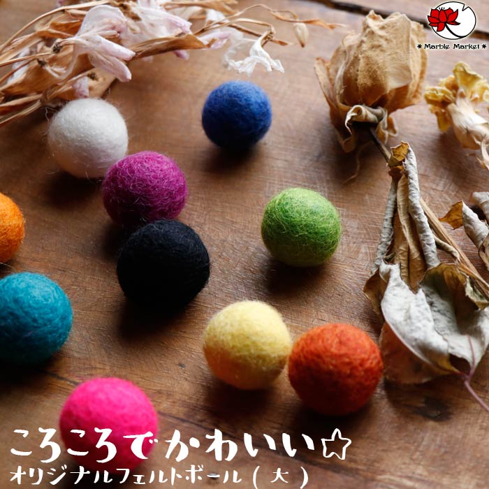 サイズ(平置き採寸) 直径 約25mm コメント カラフルで可愛らしい、マーブルマーケットオリジナルのフェルトボール(10個入り)♪ 手芸やクラフトに最適なサイズで、ヘアピンやゴムに取り付けてカンタンなアクセサリーが出来上がります。 アイデア次第でかわいらしい素材となってくれる、ウール100%のコロコロとしたフェルトボールです。 ネパールの職人の手によって、ひとつひとつ手でまるめて作られた、あたたかみのあるハンドメイドアイテム。 そのため、ひとつひとつ表情やカラーが若干異なります。 ご理解の上、ご購入くださいませ。 素材 ウール100% 原産国 ネパール 仕様 ※手作り品のため大きさや形にバラつきがあります 配送 ※9セットまでメール便1通での発送が可能です 注意事項 ※製品の特性上、摩擦などにより多少の色落ちや色移りする場合があります。特に白色、淡色とのお洗濯・着用はご注意ください。 ※全てハンドメイドで作られている為、表記サイズと実際のサイズが異なる場合があります。 ※商品の色合いにつきましては、できるだけ忠実に再現しておりますが、PCやスマホ画面の環境設定により、色合いが違って見える場合がございます。予めご了承下さいませ。 オリジナル!カラフル フェルトボール(15個入り)