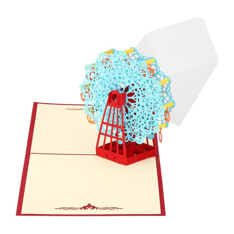 PATIKIL ご挨拶ティングカード 観覧車 サンキューカード 誕生日カード 封筒付き3D 女性 友達 記念日 バレンタインデー ブルー