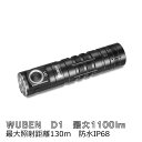 WUBEN D1 商品詳細 LED CREE XP-L HI × 1 最大照射距離 130m 明るさ最大 1100ルーメン モード Highモード Medモード Lowモード Moonモード ストロボモード SOSモード 最大連続使用時間 150時間 防塵・防水 IP68 充電方式 Type-C 充電式(5V/2A) 使用電池 18650リチウムイオン充電池 × 1 本体サイズ(mm) 105mm × 23.5mm ( L × D ) 本体質量 62g(電池含まず) 109g(電池含む) 材質 アルミ合金製 付属品 D1 本体 × 1 18650リチウムイオン充電池 × 1 ストラップ × 1 防水パッキン(スペア) × 2 Type-C充電ケーブル × 1 取扱説明書/保証書 × 1【xx年に一度の・・】災害が多い中、ぜひ停電に備えて「 懐中電灯 」! ■WUBEN D1 高品質懐中電灯 明るい最大1100lm 登山・キャンプに。非常時のために 防犯グッズ&モバイルバッテリーとしても 使用用途:登山 防災 防犯 探検 点検 巡視 警備 診察 犬の散歩 キャンプ 地震時 緊急時 停電時 災害グッズ 魚釣り サイクルランプ ジョギング などに ■D1ご使用方法 点灯・消灯 ・Wボタンスイッチを押すとON→OFF→ONと切り替わります。明るさモード記憶機能搭載。 モード切替 ・点灯時、Wボタンスイッチを長押しするととMoon→Low→Med→Highと切り替わります。 クイックハイモード ・点灯時、Wボタンスイッチを連続2 回押し→Highモードで点灯。 クイックムーンモード ・:消灯時、 Wボタンスイッチを長押し→Moonモードで点灯。そのまま ボタンスイッチを長押しするとMoon→Low→Med→Highと切り替わります。 フラッシュモード ・点灯時、Wボタンスイッチを連続2回押し→ストロボモードで点灯。 再度、Wボタンスイッチを連続2回押し→SOSモードで点灯。 再度、スイッチを押すと元のモードに戻ります。 ホタル光 ・ホタル光を点灯させると暗闇でも本体が置いてある場所がわかります。点灯時及び消灯時、 Wボタンスイッチを連続3 回押し→ホタル光点灯。再度、Wボタンスイッチを連続3 回押し→ホタル光消灯。