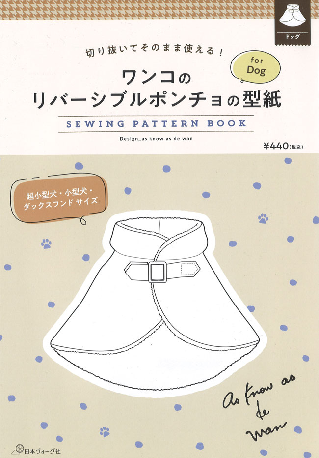 【日本ヴォーグ社】切り抜いてそのまま使える! 型紙BOOKシリーズ≪ワンコのリバーシブルポンチョの型紙≫【for Dog(超小型犬/小型犬/ダックスフンドサイズ掲載)】