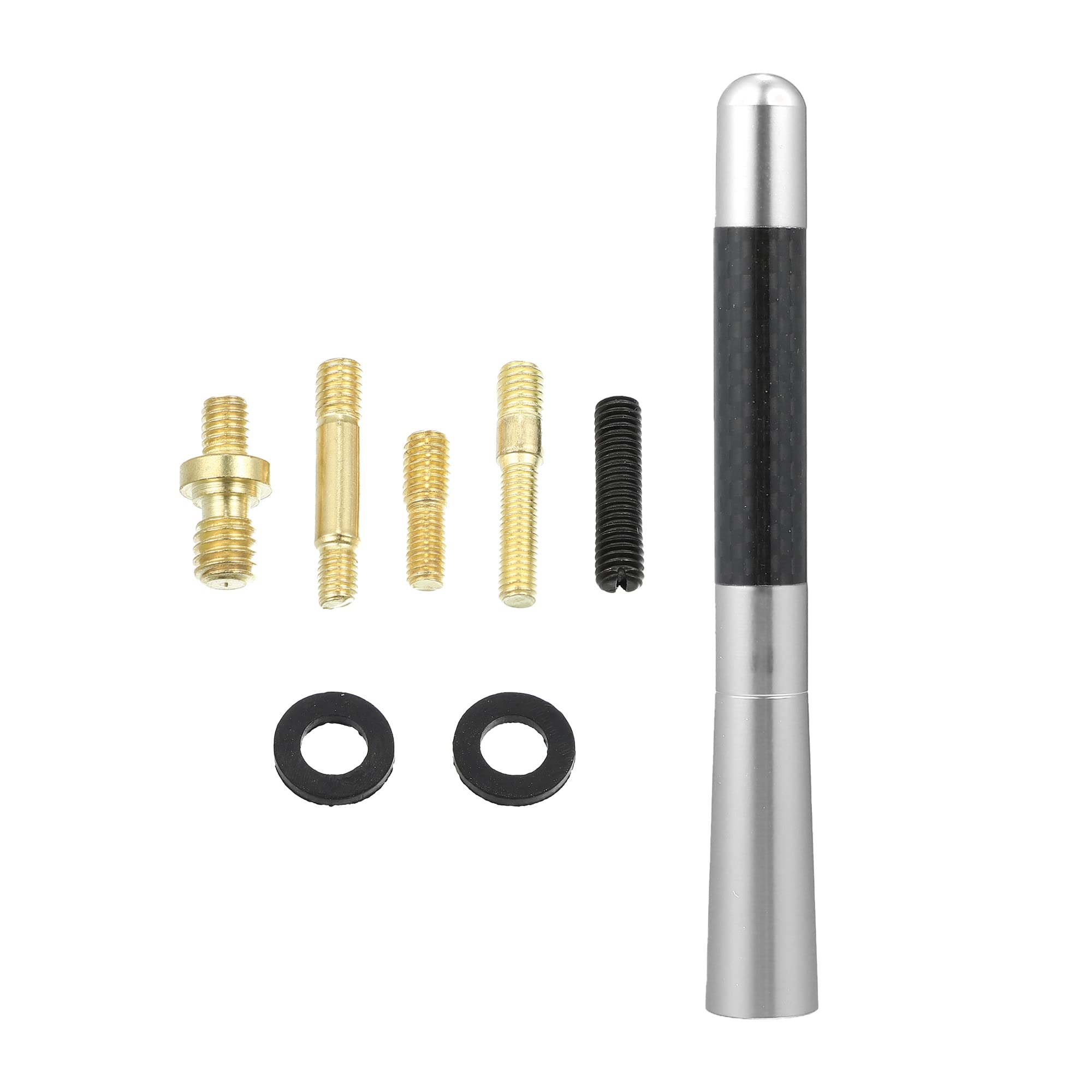 T AM FMラジオ信号アンテナマスト ユニバーサル カー用 Jeepに対応 Dodgeに対応 Ramに対応 Fordに対応 Toyotaに対応 炭素繊維パターン 12 cm 1セット シルバートーン
