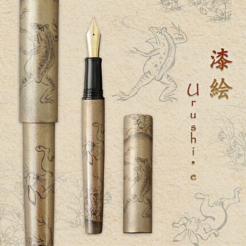 ≪詳細≫ ペン先 : 18金 サイズ : M(中字) 機構 : コンバーター・カートリッジ両用式(ヨーロッパ共通規格) 長さ : 142mm 太さ : 17mm 重さ : 20g 材質 : 木軸(黒檀/エボニー)・天然生漆(日本産) 加飾:漆絵技法 付属品 : コンバーター・カートリッジ 保証書・説明書・専用桐箱 配送方法 : 宅配便 ※付属品の仕様・内容が変更になる場合がございます。 関連キーワード 筆記具 文房具 文具 万年筆 高級筆記具 ペン 筆 限定品 リミテッド 万年筆インク インク 沼 インバウンド 伝統 メディア テレビ ガイアの夜明け ラジオ 東京FM サンデーズポストNOASFM 雑誌 趣味の文具箱 ステーショナリーマガジン ISOT 見本市 ギフトショー 文具女子博 女子分 Forbes 新聞 ニュース 九州 大分県 oita おんせん県 豊後高田市 昭和の町 ふるさと納税 クラウドファンディング kickstarter マクアケ 内祝 内祝い お祝い返し ウェディングギフト ブライダルギフト 引き出物 引出物 結婚引き出物 結婚引出物 結婚内祝い 出産内祝い 命名内祝い 入学内祝い 卒業内祝い 就職内祝い 新築内祝い 引越し内祝い 快気内祝い 開店内祝い 二次会 披露宴 お祝い 御祝 結婚式 結婚祝い 出産祝い 入学祝い 卒業祝い 成人式 就職祝い 昇進祝い 新築祝い 上棟祝い 引っ越し祝い 引越し祝い 開店祝い 退職祝い 快気祝い 全快祝い 初老祝い 還暦祝い 古稀祝い 喜寿祝い 傘寿祝い 米寿祝い 卒寿祝い 白寿祝い 長寿祝い 金婚式 銀婚式 ダイヤモンド婚式 結婚記念日 プレゼント ギフト ギフトセット セット 贈答品 お返し お礼 お祝い返し 御礼 ごあいさつ ご挨拶 御挨拶 プレゼント お見舞い お見舞御礼 お餞別 記念日 誕生日 父の日 ちちの日 母の日 ははの日 敬老の日 記念品 卒業記念品 定年退職記念品 ゴルフコンペ コンペ景品 景品 賞品 粗品 お中元 御中元 夏ギフト 季節の贈り物 クリスマスプレゼント お歳暮 御歳暮 お年賀 御年賀 残暑見舞い 年始挨拶 バレンタインデー ホワイトデー うちいわい 人気 手土産 プチギフト お配りギフト 法人注文 まとめ買い 大量注文 父 母 父親 母親 お父さん お母さん 義父 義母 おじいちゃん おばあちゃん 両親 家族 兄 弟 姉 妹 親戚 祖父 祖母 叔父 叔母 友人 友達 女友達 男性 男子 女性 女子 夫 妻 旦那さん 奥さん カップル 彼氏 彼女 先生 会社 同僚 上司 取引先 部下 ママ友 20代 30代 40代 50代 60代 70代 80代 中学生 高校生 大学生 社会人 成人 敬老会水墨画「鳥獣戯画(ちょうじゅうぎが) 今や日本の漫画文化は世界中で人気で、「アニメ大国ニッポン」 を訪れる観光客は増加の一途を辿っています。 今回ご紹介するワンチャー万年筆は「鳥獣戯画(鳥獣人物戯画とも呼ばれる)」 という水墨画を原図とするデザインで、ウサギと蛙が相撲をとったり、 猿を追いかけたりとユーモラスで躍動感のある線で描かれた 『日本最古の漫画』とも称されております。 また、京都の高山寺に伝わる絵本墨画の絵巻物として有名なこの作品は、 国宝としても知られています。水墨画を漆芸で描くというのは 職人の高い技量が必要なのですが、その墨の繊細な表情が 見事に表現された逸品が仕上がりました。 日本の熟練職人のみができるハイブリッドな世界観 日本美術史の中で数多くの名画が存在し、それぞれの作品に 込められたストーリーをひとつひとつ知ることで、その興味が深まります。 その中でも水墨画や墨彩画の名作をモチーフにした新しい世界観を、 ワンチャーは漆工芸で創造したいと想い、ようやく今回の作品の完成に辿り着きました。 本当に筆と墨で描いたのでは?と見紛うほどの細部わたる完成度です。 これすべて漆絵技法による漆工芸だけで制作されているのです。 日本の熟練職人の中でも高い技術力をもった一握りにしか このレベルの作品はつくれません。 まさに水墨画と精密漆絵の ハイブリッドな美しい世界観をお楽しみください。 日本画の歴史 中国で生まれ発展した水墨画は、12世紀後半~13世紀頃に禅僧の渡来と 共に日本へ伝えられました。もちろん、日本にはそれ以前にも 墨筆による絵画技法はありましたがシンプルな線描だったのです。 その後、禅僧を中心に全国へ広められ、日本独自の世界観を 表現する技法として大きく多様化していきました。 水墨画、墨彩画は日本の美術史の中で欠くことのできない礎を築き、 近現代において西洋絵画が日本に入ってきてから区別するために 「日本画」と総称して呼ばれ始めたという歴史を辿ります。 18金ペン先 今回のシリーズにおける漆絵万年筆には18金ペン先をお付けしてご提供いたします。 絢爛たる風合いをお楽しみください。 純国産天然生漆 今回ワンチャーよりご提供する万年筆はすべて 純国産の天然生漆を100%使用しております。 初夏、山林に咲くウルシの花。 漆液が採取できるのは落葉高木樹のウルシノキというウルシ科植物で、 一本の木から年間約100~300グラム程度しか採れない貴重なものなのです。 ※2023.7/21放映 テレビ東京系「ガイアの夜明け」にて弊社が取り上げられました WANCH