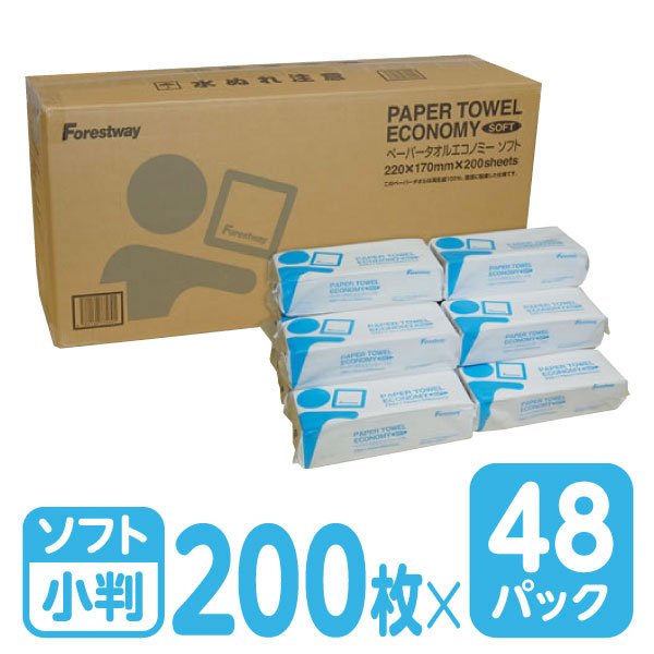 ペーパータオル エコノミー ソフトタイプ 200枚×48パック Forestway ペーパー タオル 小判 サイズ 業務用 まとめ買い 大容量 大量 柔らかい 洗面所 台所 キッチン 油汚れ レジャー アウトドア 紙タオル 掃除 日用品 使い捨てペーパータオル 手拭きペーパー 掃除ペーパー