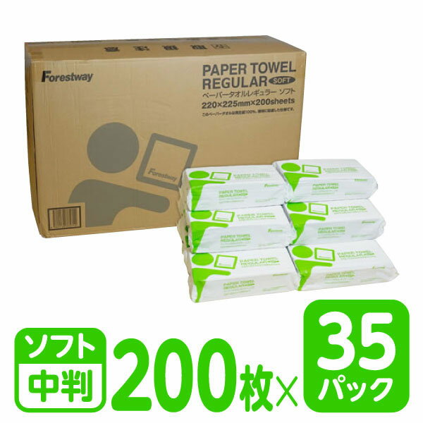 ペーパータオル レギュラー ソフトタイプ 200枚×35パック Forestway ペーパー タオル 中判 サイズ 業務用 まとめ買い 大容量 大量 柔らかい 洗面所 台所 キッチン 油汚れ 水回り ペーパーハンドタオル 紙タオル レジャー アウトドア 掃除 手拭きペーパー 掃除ペーパー