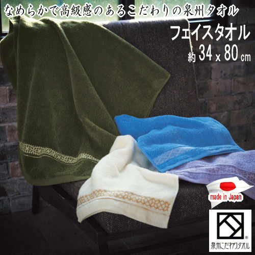 タオル フェイスタオル 約34x80cm 日本製 泉州 泉州タオル 綿100% 甘撚り エジプト産GIZA綿使用 こだわり ふっくら 吸水性 【P2】