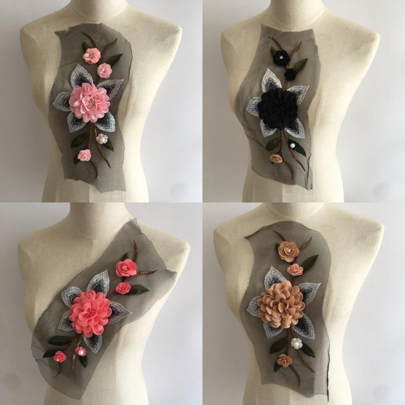 付け襟 レディース 刺繍 立体フラワー フェイクパール レース チュール マルチカラー DIY ハンドメイド 服飾装飾 ウェディング ブライダル 手芸材料 ポリエステル