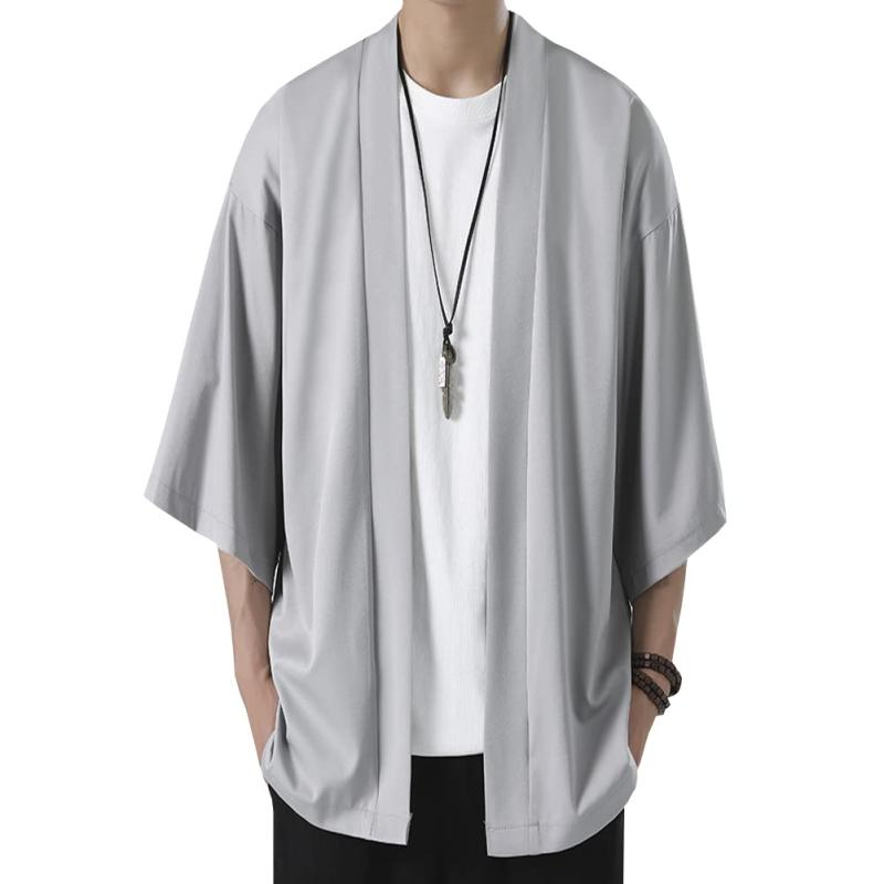 [Yezai] メンズ 夏服 和式カーディガン メンズ 無地 羽織 七分袖 半袖 和風 薄手 おしゃれ シャツ 軽量 通気性 夏 服 大きいサイズ hui-2XL